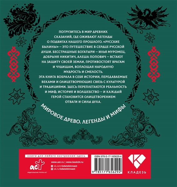 Погрузитесь в мир древних сказаний, где оживают легенды о подвигах нашего прошлого. "Русские былины" - это путешествие в сердце русской души. Бесстрашные богатыри - Илья Муромец, Добрыня Никитич, Алеша Попович - встают на защиту своей земли, противостоят врагам и чудищам, воплощая народную мудрость и смелось. Эта книга вобрала в себя истории, передаваемые веками и воплощающие связь с культурой и традициями. Здесь переплетаются реальность и миф, история и волшебство — и каждый герой становится олицетворением отваги и силы духа.