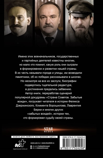 Их имена известны всей стране и сегодня, но мало кто помнит, какими они вошли в историю и что сделали для своего государства. Они находились в пучине гражданского противостояния и социальных потрясений, меняя ход истории. В их честь называли города, улицы и горные вершины, им возводили памятники, об их победах рассказывали в школах, но они не могли знать, что спустя годы их биографии подвергнутся тщательной редактуре, а все достижения будут преданы забвению. Герои книги — военачальники, государственные и партийные деятели, чьи судьбы стали отражением эпохи. Три русские революции, Гражданская война, Большой террор, Великая Отечественная война, холодная война, эпоха застоя — эти сложные, а порой страшные для страны события проходят красными линиями в биографиях "забытых вождей", формируют их характеры и объясняют многие поступки. Эти непростые времена были для героев книги не просто фоном жизни, они стали самой их жизнью.