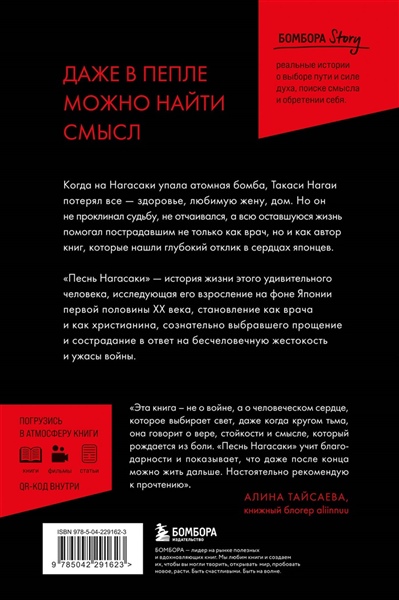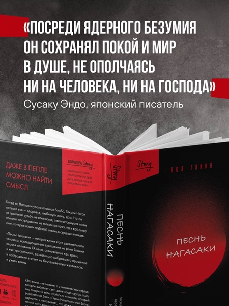 ДАЖЕ В ПЕПЛЕ МОЖНО НАЙТИ СМЫСЛ. Когда на Нагасаки упала атомная бомба, Такаси Нагаи потерял все — здоровье, любимую жену, дом. Но он не проклинал судьбу, не отчаивался, а всю оставшуюся жизнь помогал пострадавшим не только как врач, но и как автор книг, которые нашли глубокий отклик в сердцах японцев. «Песнь Нагасаки» — история жизни этого удивительного человека, исследующая его взросление на фоне Японии первой половины XX века, становление как врача и как христианина, сознательно выбравшего прощение и сострадание в ответ на бесчеловечную жестокость и ужасы войны.