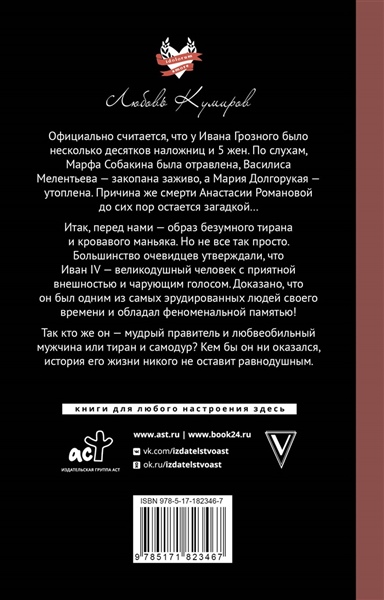 Официально считается, что у Ивана Грозного было несколько десятков наложниц и 5 жен. По слухам, Марфа Собакина была отравлена, Василиса Мелентьева – закопана заживо, а Мария Долгорукая – утоплена. Причина же смерти Анастасии Романовой до сих пор остается загадкой… Итак, перед нами – образ безумного тирана и кровавого маньяка. Но не все так просто. Большинство очевидцев утверждали, что Иван IV – великодушный человек с приятной внешностью и чарующим голосом. Доказано, что он был одним из самых эрудированных людей своего времени и обладал феноменальной памятью! Так кто же он – мудрый правитель и любвеобильный мужчина или тиран и самодур? Кем бы он ни оказался, история его жизни никого не оставит равнодушным.