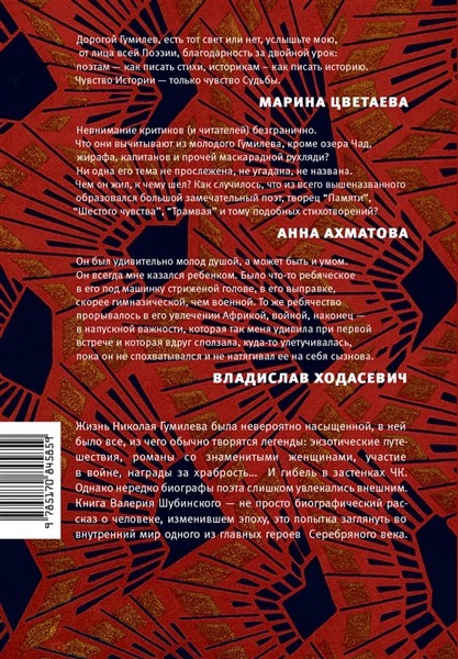Книга представляет собой подробную документальную биографию одного из крупнейших русских поэтов, чья жизнь стала легендой, а стихи — одним из вершинных событий Серебряного века. Образ Гумилева дан в широком контексте эпохи и страны: на страницах книги читатель найдет и описание системы гимназического образования в России, и колоритные детали абиссинской истории, малоизвестные события Первой мировой войны и подробности биографий парижских оккультистов, стихи полузабытых поэтов и газетную рекламу столетней давности. Книга беспрецедентна по охвату документального материала; автор анализирует многочисленные воспоминания и отзывы современников Гумилева (в том числе неопубликованные), письма и дневники. В книге помещено более двухсот архивных фотографий, многие из которых публикуются впервые, в приложении — подборка стихотворных откликов на смерть Гумилева.