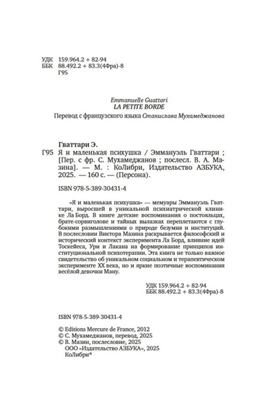 Чтобы не потеряться в живом и непосредственном повествовании автора, в послесловии Виктор Аронович Мазин, практикующий психоаналитик, преподаватель и философ, рассказал о том, какой была клиника Ла Борд в те времена.