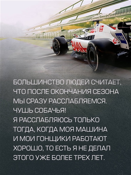 Гюнтер Штайнер — один из старожилов автоспорта, но широкой публике он стал по-настоящему известен благодаря сериалу Drive to Survive. На протяжении сезона-2022 Штайнер в своем неповторимом стиле — откровенно, эмоционально и с юмором — вел дневник — и написал уникальную книгу, которая немедленно стала бестселлером Sunday Times.