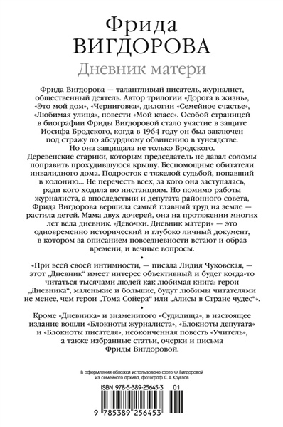 Но помимо работы журналиста, а впоследствии и депутата районного совета, Фрида Вигдорова вершила самый главный труд на земле — растила детей. Мама двух дочерей, она на протяжении многих лет вела дневник. «Девочки. Дневник матери» — это одновременно исторический и глубоко личный документ, в котором за описанием повседневности встают и образ времени, и вечные вопросы. Эти записи полны тепла и света, юмора, нежности и проницательного уважения к личности.