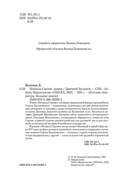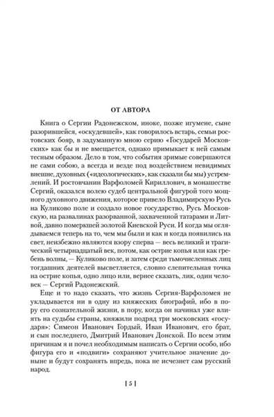 Роман «Похвала Сергию» посвящен грандиозной фигуре преподобного Сергия Радонежского — подвижника, чудотворца, уже при жизни почитавшегося наравне со святыми, а также исторического деятеля, благословившего князя Дмитрия Донского на битву на Куликовом поле. Писатель и историк Дмитрий Михайлович Балашов, автор знаменитого исторического цикла «Государи Московские», неоднократно обращался к личности отца Сергия, в равной степени значительной как для духовной, так и для светской, политической истории Российского государства. В романе «Похвала Сергию» автор создает объемный и яркий образ мира XIV века, на фоне которого произошло становление и свершались духовные подвиги Сергия Радонежского — человека, с одной стороны, исключительно выдающегося, с другой — плоть от плоти той трудной и героической эпохи.