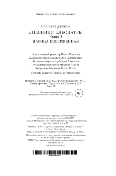 Редкое обаяние сочеталось в ней с властностью, ораторское искусство — с волшебным голосом; она была прекрасно образованна и свободно говорила на многих языках. Жизнь Клеопатры, блистательной царицы Нила, рассказанная от первого лица, разворачивается на страницах дилогии Маргарет Джордж «Дневники Клеопатры» во всех подробностях — трагических и счастливых. В книге второй «Царица поверженная» героиня предстает человеком большой силы духа, умеющим с достоинством принимать неизбежное. После гибели Цезаря от рук заговорщиков Клеопатра возвращается в Александрию. Горе не сломило ее, и теперь она во что бы то ни стало желает создать мощную империю, способную противостоять ненасытному Риму. На встречу с римским полководцем Марком Антонием царица приплывает на богато украшенном корабле с пурпурными парусами. Она хочет поразить римлянина в самое сердце, и это ей удается. Клеопатра обретает не только нового возлюбленного, но и сильного союзника. Но ничто не длится вечно...