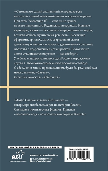 Книга "Александр II" приподнимает занавес над известными тайнами. Внятные характеры, живые — без пиетета и придыхания — герои, великая любовь, мучительная ревность… Блестящие афоризмы, кристалл мысли, сверкающий сквозь детективную интригу, и какое-то удивительное сочетание масштаба с подробнейшей деталировкой. В книге Эдварда Радзинского - смелые авторские версии, оригинальные трактовки исторических событий.