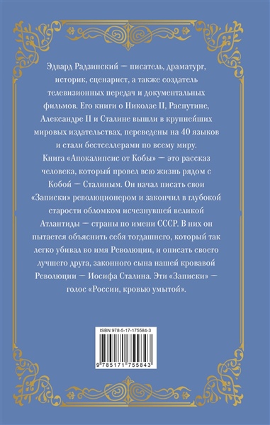 Эдвард Радзинский — писатель, драматург, историк, сценарист, а также создатель телевизионных передач и документальных фильмов. Его книги о Николае II, Распутине, Александре II и Сталине вышли в крупнейших мировых издательствах, переведены на 40 языков и стали бестселлерами по всему миру.