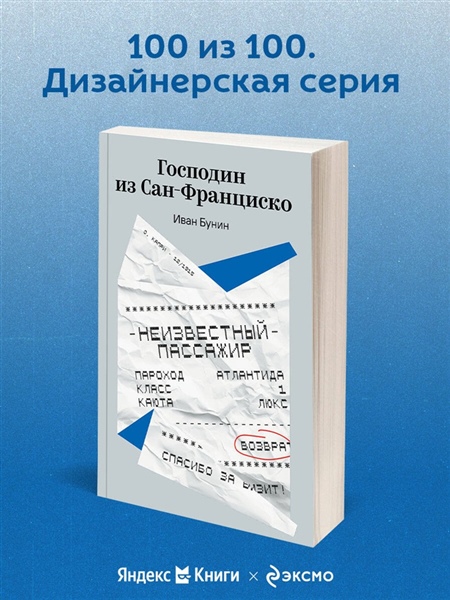 "100 из 100. Дизайнерская серия" - это коллаборация ЭКСМО и Яндекс Книг, родившаяся из проекта «100 обложек от 100 дизайнеров Яндекса». Актуальность классических текстов подчеркивается разнообразием художественных приемов в оформлении.