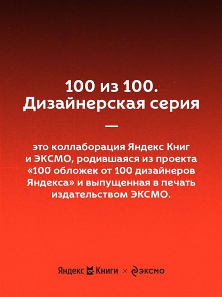 "100 из 100. Дизайнерская серия" - это коллаборация ЭКСМО и Яндекс Книг, родившаяся из проекта «100 обложек от 100 дизайнеров Яндекса». Актуальность классических текстов подчеркивается разнообразием художественных приемов в оформлении.