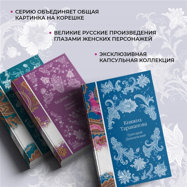 Серия «Элегантная русская классика» предлагает взглянуть на великие произведения глазами женских персонажей. Любовные переживания, роковые ошибки, сила духа и поиски справедливости — все, чем славится классическая русская литература, в страстном ярком дизайне.