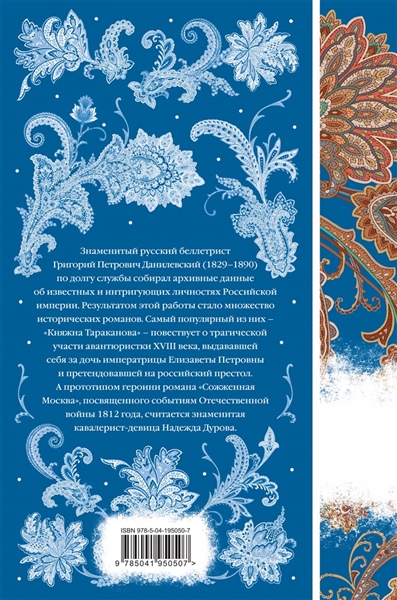 Известный русский беллетрист Григорий Петрович Данилевский (1829—1890) по долгу службы собирал архивные данные об известных и интригующих личностях Российской империи. Результатом этой работы стало множество исторических романов. Самый известных из них — «Княжна Тараканова», повествует о трагической участи авантюристки XVIII века, выдававшей себя за дочь императрицы Елизаветы Петровны и претендовавшей на российский престол. А прототипом героини романа «Сожженная Москва», посвященному событиям Отечественной войны 1812 года, считается знаменитая «кавалерист-девица» Надежда Дурова.