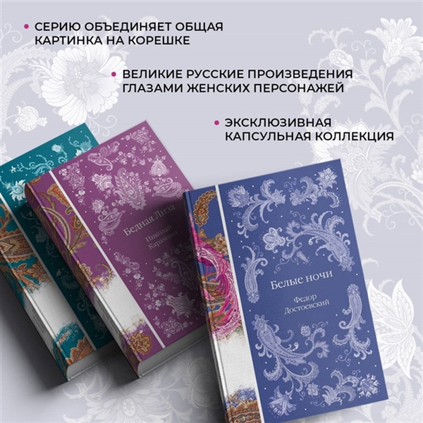 Серия «Элегантная русская классика» предлагает взглянуть на великие произведения глазами женских персонажей. Любовные переживания, роковые ошибки, сила духа и поиски справедливости — все, чем славится классическая русская литература, в страстном ярком дизайне.