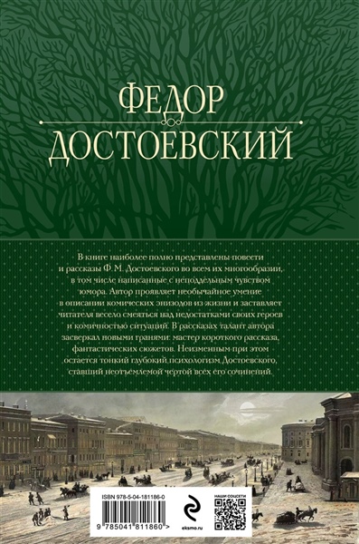 В книге наиболее полно представлены повести и рассказы Ф. М. Достоевского во всем их многообразии, в том числе написанные с неподдельным чувством юмора. Автор проявляет необычайное умение в описании комических эпизодов из жизни и заставляет читателя весело смеяться над недостатками своих героев и комичностью ситуаций. В рассказах талант автора засверкал новыми гранями: мастер короткого рассказа, фантастических сюжетов. Неизменным при этом остается тонкий глубокий психологизм автора, ставший неотъемлемой чертой всех сочинений Достоевского.