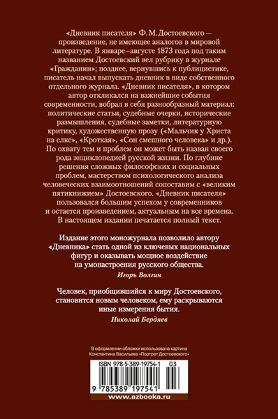 «Дневник писателя» Ф. М. Достоевского — произведение, не имеющее аналогов в мировой литературе. В январе–августе 1873 года под таким названием Достоевский вел рубрику в журнале «Гражданин»; позднее, вернувшись к публицистике, писатель начал выпускать дневник в виде собственного отдельного журнала. «Дневник писателя», в котором автор откликался на важнейшие события современности, вобрал в себя разнообразный материал: политические статьи, судебные очерки, исторические размышления, судебные заметки, литературную критику, художественную прозу («Мальчик у Христа на елке», «Кроткая», «Сон смешного человека» и др.). По охвату тем и проблем он может быть назван своего рода энциклопедией русской жизни. По глубине решения сложных философских и социальных проблем, мастерством психологического анализа человеческих взаимоотношений сопоставим с «великим пятикнижием» Достоевского. «Дневник писателя» пользовался большим успехом у современников и остается произведением, актуальным на все времена. В настоящем издании печатается полный текст.