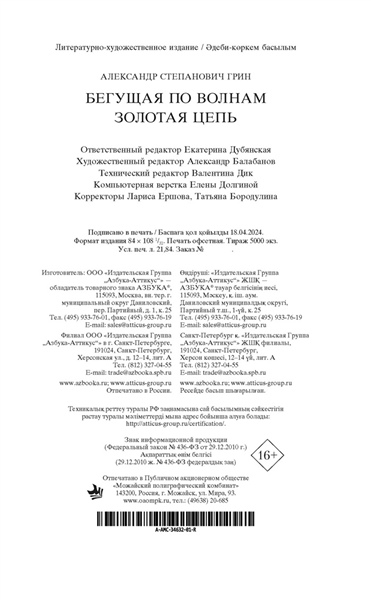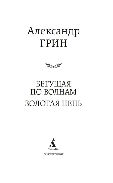 «Когда дни начинают пылиться и краски блекнуть, я беру Грина. Я раскрываю его на любой странице. Так весной протирают окна в доме. Все становится светлым, ярким, все снова таинственно волнует, как в детстве», — писал Даниил Гранин. И эти слова как нельзя лучше характеризуют творчество Александра Степановича Гриневского (1880–1932), писавшего под псевдонимом Александр Грин. «Суровый мечтатель», в своих произведениях Грин создал сказочную страну, опасную и манящую, как море. И пусть этот прекрасный, яркий и пронизанный свежим ветром мир не свободен от человеческой алчности, косности и жестокости, в нем всегда жива неистребимая вера в победу любви и добра. В настоящий сборник вошли два романа: знаменитая романтическая фантазия «Бегущая по волнам», а также «Золотая цепь» — захватывающая история шестнадцатилетнего юнги, который однажды ночью отправился ловить удачу на угнанном корабле.