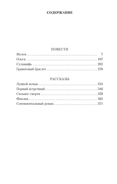 Замечательный русский писатель А. И. Купринавтор повестей и рассказов Яма, Поединок, Изумруд, Белый пудель и др. Проза Куприна раскрывает всю глубину его познаний в науке жизневедения (К. Паустовский). В настоящий сборник вошли повести и рассказы о любви. Волнующая, мистически окрашенная проза Куприна послужила основой для фильмов Колдунья (Олеся) с Мариной Влади в главной роли и Гранатовый браслет. В сборник включены также повесть Суламифь и рассказы.