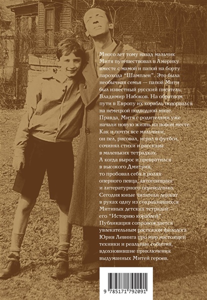 “История кораблей” — книга для детей и взрослых. Детскую часть про заокеанские путешествия придумал и нарисовал Дмитрий Набоков, сын великого русского писателя Владимира Набокова. Филолог Юрий Левинг перевёл историю на русский язык и снабдил увлекательным рассказом про мир настоящей техники.