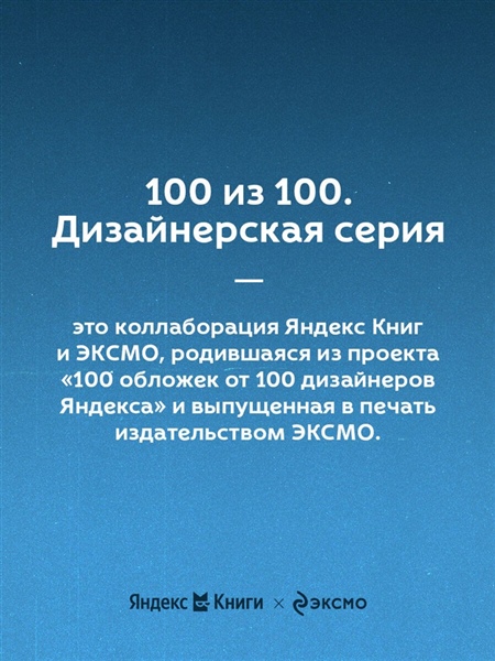 "100 из 100. Дизайнерская серия" - это коллаборация ЭКСМО и Яндекс Книг, родившаяся из проекта «100 обложек от 100 дизайнеров Яндекса». Актуальность классических текстов подчеркивается разнообразием художественных приемов в оформлении.