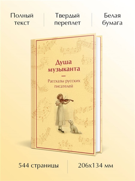 Музыка — дар или проклятие? Искусство или одержимость? Русские писатели исследуют душу творца с поразительной точностью. Тайна смерти Моцарта. Городок внутри музыкальной табакерки. История гениального скрипача, который страдает алкогольной зависимостью. Юмористическая зарисовка о дружбе контрабасиста и флейтиста. Жизнь слепого мальчика, обретающего свой мир через музыку. Это и многое другое ждет вас в сборнике "Душа музыканта", в который вошли рассказы о музыке от русских классиков: Загоскина, Пушкина, Одоевского, Тургенева, Толстого, Короленко, Чехова, Куприна, Брюсова, Паустовского, Цветаевой.