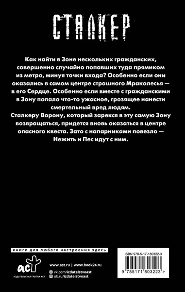 Как найти в Зоне нескольких гражданских, совершенно случайно попавших туда прямиком из метро, минуя точки входа? Особенно если они оказались в самом центре страшного Мраколесья — в его Сердце. Особенно если вместе с гражданскими в Зону попало что-то ужасное, грозящее нанести смертельный вред людям. Сталкеру Ворону, который зарекся в эту самую Зону возвращаться, придется вновь оказаться в центре опасного квеста. Зато с напарниками повезло — Нежить и Пес идут с ним.