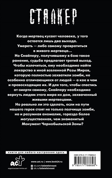 Когда мертвец кусает человека, у того остается лишь два выхода. Умереть — либо самому превратиться в живого мертвеца... Но Снайперу, получившему в бою такое ранение, судьба предлагает третий выход. Чтобы излечиться, ему необходимо найти лекарство в иной вселенной Розы Миров, которую полностью захватили зомби, не особенно отличающиеся от людей — а кое в чем и превосходящие их. И для того, чтобы спастись от смерти самому, Снайперу необходимо вернуть людям этого мира их дом, захваченный живыми мертвецами. Но реально ли это сделать, если на пути нашего героя стоят не только полчища зомби, но и разумная аномалия, гораздо более могущественная, чем знаменитый Монумент Чернобыльской Зоны?