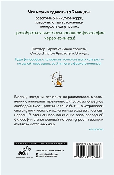 Этот увлекательный графический роман оживляет идеи великих мыслителей — от Пифагора до Эпикура — через яркие иллюстрации и доступные истории. Узнайте о гармонии чисел, сократическом методе, аллегории пещеры и радостях жизни в компании мудрецов прошлого. Идеальный образовательный ресурс для любителей искусства и философии! Читайте сами или делитесь с друзьями — откройте двери в мир глубоких размышлений!