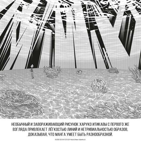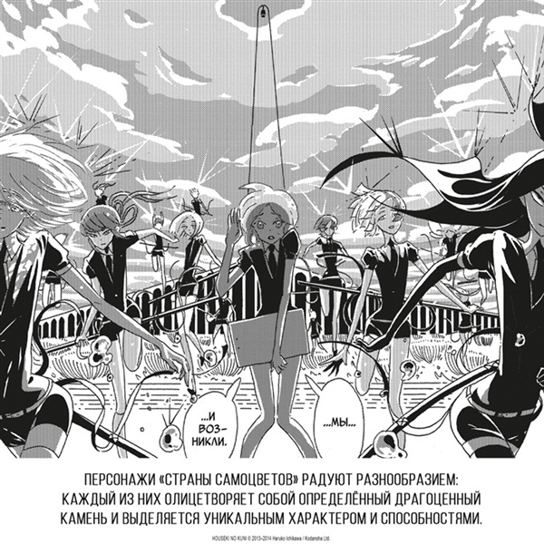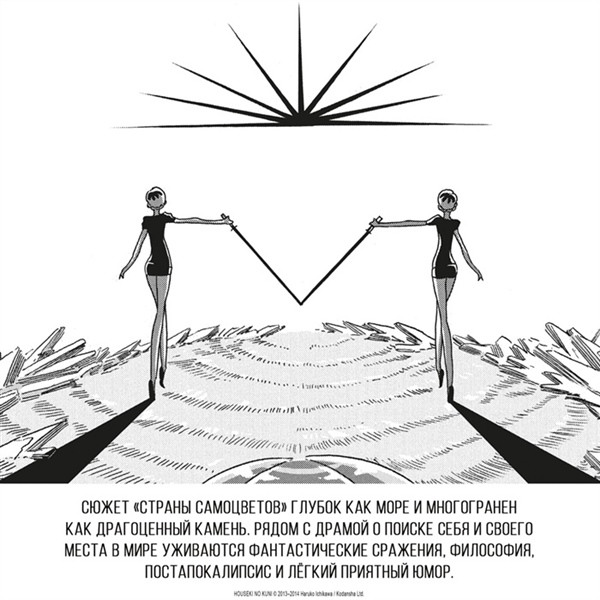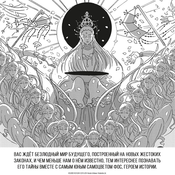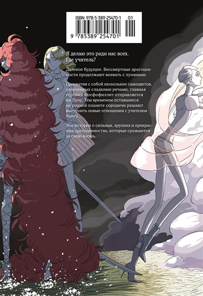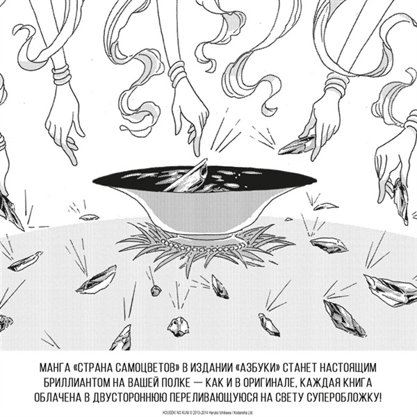 Я делаю это ради нас всех. Где учитель?Далекое будущее. Бессмертные драгоценности продолжают воевать с лунянами.Прихватив с собой с нескольких самоцветов, увлеченных сладкими речами, главная героиня Фосфофиллит отправляется на Луну. Тем временем оставшиеся на родной планете сородичи решают выстроить новые отношения с учителем Конго…Это история о сильных, хрупких и прекрасных драгоценностях, которые сражаются за свою жизнь.