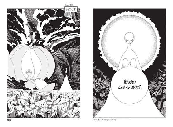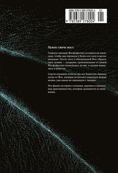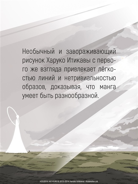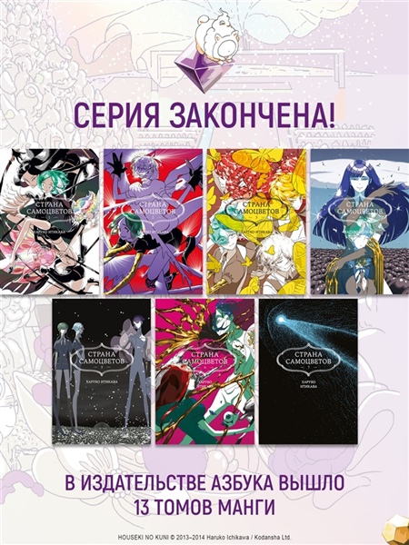 Главную героиню Фосфофиллит оставили на земле одну, чтобы она переняла у Конго его силу и воспоминания. После чего к обновленной Фос обратились луняне — создания, произошедшие от людей. Фосфофиллит помолилась за них, и луняне вернулись в небытие.