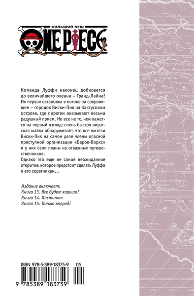 Команда Луффи наконец добирается до величайшего океана, Гранд-Лайна! Их первая остановка в погоне за сокровищем – городок Виски-Пик на Кактусовом острове, где пиратам оказывают весьма радушный прием. Но все не то, чем кажется на первый взгляд: очень быстро пиратская шайка обнаруживает, что все жители Виски-Пик на самом деле члены опасной преступной организации «Барок-Воркс», и у них свои планы на отважных путешественников.