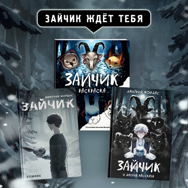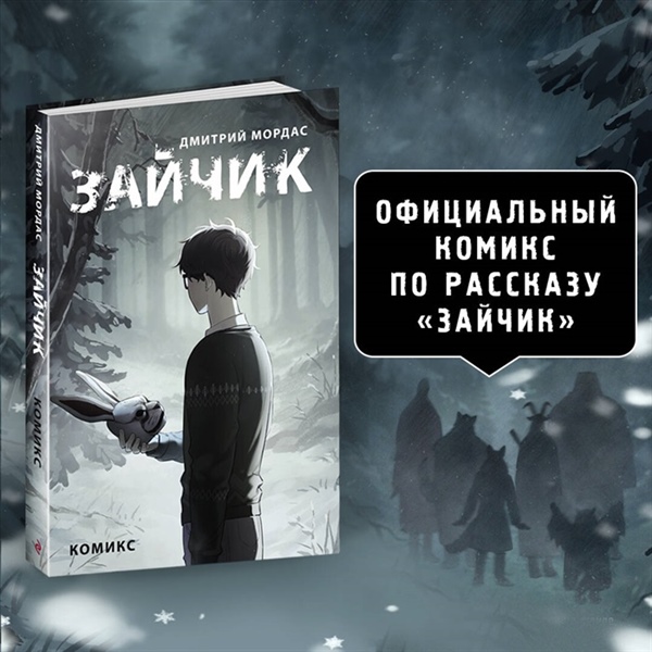 Стильное оформление, концептуальная обложка, пугающая атмосферная история, а также уникальный дополнительный материал в конце книги — всё это ждёт вас в комиксе «Зайчик», который имеет ещё и формат вебтуна!