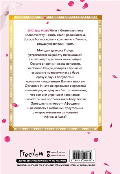 Молодая девушка Ирида устраивается на работу помощницей в штаб-квартиру самих олимпийцев. Однако смертным здесь непросто, особенно Ириде, которая в прошлые выходные познакомилась в баре сразу с двумя полубогами компании — надменным Данте и нежным Орионом. Никто не сравнится с красотой олимпийцев, но девушка быстро понимает, что все они упрямые и капризные. Сможет ли она противостоять богу любви Эросу, вспыльчивости Афродиты и не попасть в любовный треугольник с очаровательными сыновьями Афины и Аида?