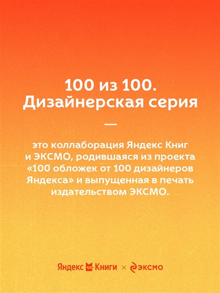 «100 из 100. Дизайнерская серия» - это коллаборация ЭКСМО и Яндекс Книг, родившаяся из проекта «100 обложек от 100 дизайнеров Яндекса». Актуальность классических текстов подчеркивается разнообразием художественных приемов в оформлении.