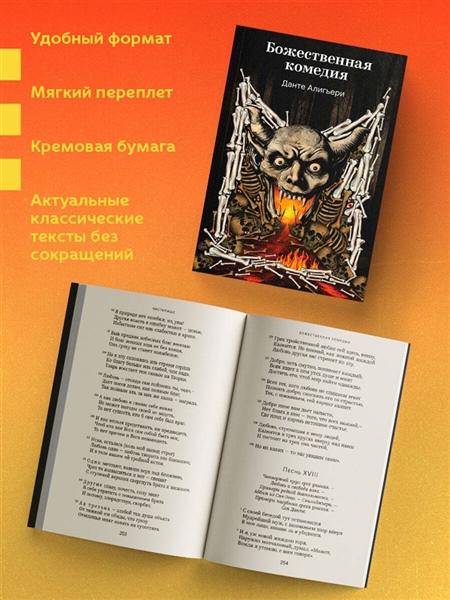 Объединив религию, науку и политику, Данте создал символическую и глубоко личную поэму о человеке, его грехах, страданиях и вечном стремлении к Богу. В странствиях вместе с Вергилием и Беатриче герой встречает великих деятелей прошлого, размышляет о добре и зле, о божественной справедливости и предназначении человека — и восходит из мрака к свету.