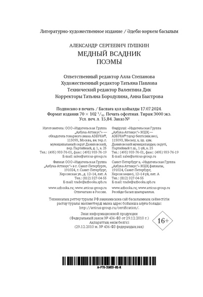 В книгу вошли наиболее известные поэмы А. С. Пушкина, ставшие важными вехами его творческого пути, — от легкой, шутливой, озорной поэмы «Руслан и Людмила» (1820) до «Медного всадника» (1833), вершинного пушкинского произведения, в центре которого — столкновение великого и грозного царя и маленького человека, осмелившегося бунтовать против «державца полумира». В поэме нашли отражение размышления автора о драматических событиях русской истории, о роли государства и личности. В издание включены статья и подробные комментарии Г. Е. Потаповой.