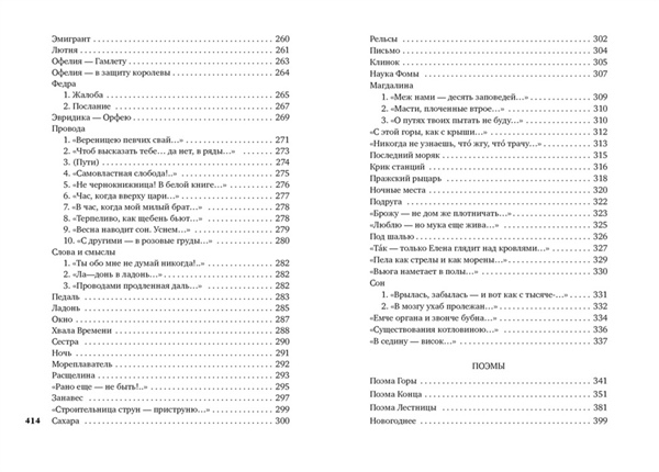 В сборник включены стихотворения разных лет и поэмы, в числе которых величайшие шедевры русской любовной поэзии двадцатого века: «Поэма Горы» и «Поэма Конца».