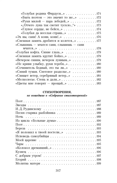 Вниманию читателя предлагается собрание стихотворений Сергея Есенина, одного из крупнейших русских поэтов ХХ века. Стихи и только стихи открывают нам настоящего Есенина,пишет К. М. Азадовский, автор вступительной статьи и комментариев к настоящему изданию,помогают увидеть его во всей противоречивости и правде, подчас жестокой и беспощадной.