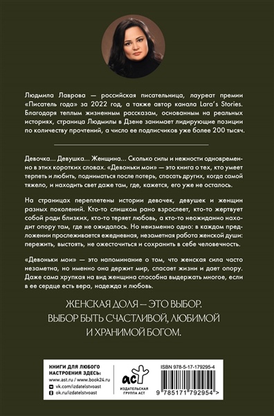 На страницах переплетены истории девочек, девушек и женщин разных поколений. Кто-то слишком рано взрослеет, кто-то жертвует собой ради близких, кто-то теряет любовь, а кто-то неожиданно находит опору там, где не ожидалось. Но неизменно одно: в каждом предложении прослеживается ежедневная, незаметная работа женской души: пережить, выстоять, не ожесточиться и сохранить в себе человечность.