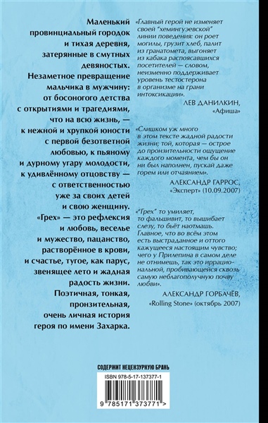 "Грех" — это рефлексия и любовь, веселье и мужество, пацанство, растворённое в крови, и счастье, тугое, как парус, звенящее лето и жадная радость жизни.