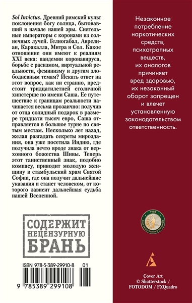 Sol Invictus. Древний римский культ поклонения богу солнца, бытовавший в начале нашей эры. Сиятельные императоры с коронами из солнечных лучей. Гелиогабал, Аврелиан, Каракалла, Митра и Сол. Какое отношение они имеют к реалиям XXI века: пандемии коронавируса, борьбе с расизмом, виртуальной реальности, феминизму и другим злободневным темам? Искать ответ на этот вопрос, как ни странно, предстоит тридцатилетней столичной хипстерше по имени Саша. Ее путешествие к границам реальности начинается весьма прозаично: получив от отца солидный подарок в размере тридцати тысяч евро, Саша отправляется в большое турне по святым местам. Несколько лет назад, желая разгадать секреты мироздания, она уже посетила Индию, где получила нечто вроде знака от верховного божества Шивы. Теперь этот таинственный знак, подобно компасу, приводит молодую женщину в стамбульский храм Святой Софии, где она получит дальнейшие указания и станет человеком, от которого зависит дальнейшая судьба нашей Вселенной.