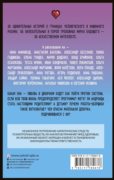 Какая она — любовь в двоичном коде? Как пойти против системы, если всю твою жизнь предопределяет программа? Могут ли андроиды стать настоящими родителями? А детьми? Почему роботы-уборщики такие жутковатые? Чем опасна маленькая девочка, подружившаяся с ИИ?