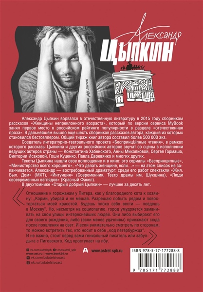 Александр Цыпкин ворвался в отечественную литературу в 2015 году сборником рассказов "Женщины непреклонного возраста", который по версии сервиса MyBook занял первое место в российском рейтинге популярности в разделе "отечественная проза".