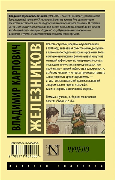 Повесть "Чучело", впервые опубликованная в 1981 году, вызвавшая ожесточенную дискуссию в прессе и впоследствии экранизированная Роланом Быковым (причем фильм вызвал ничуть не меньший эффект, чем его литературная основа), посвящена вечно актуальным для подростков проблемам — первой любви, отваге, искренности, стайному инстинкту, которым приходится платить за популярность среди сверстников, — и, увы, ужасам школьной травли, показанной автором как со стороны "палачей", так и со стороны их несчастной жертвы. Помимо "Чучела", в сборник также вошла повесть "Чудак из 5 "Б".