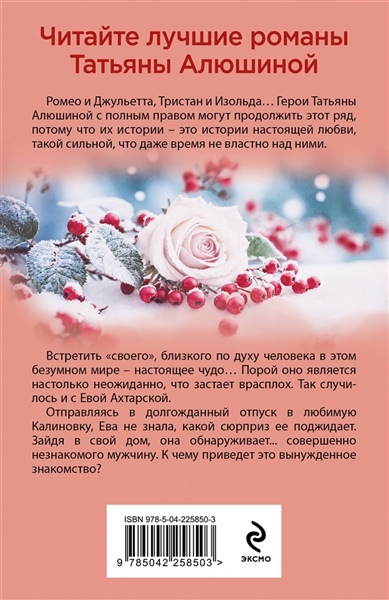 Встретить "своего", близкого по духу человека в этом безумном мире — настоящее чудо… Порой оно является неожиданно и даже может застать нас врасплох. Ева Ахтарская знает об этом не понаслышке. Отправляясь в долгожданный отпуск в любимую Калиновку, Ева не знала, какой сюрприз ее поджидает. Зайдя в свой дом, девушка обнаруживает там... совершенно незнакомого мужчину. К чему приведет это вынужденное знакомство?