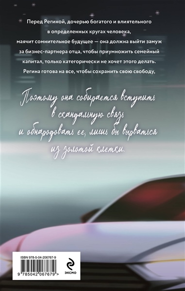 «Скандальная связь» — это яркий и эмоциональный роман с противоречивыми героями. Они совершают ошибки и учатся на них, ранят друг друга, а потом собирают сердца по кусочкам. Наверняка они знают лишь то, что их невероятно тянет друг к другу, но чтобы обрести счастье, им придется пройти долгий и тернистый путь. Перед Региной, дочерью богатого и влиятельного в определенных кругах человека, маячит сомнительное будущее — она должна выйти замуж за бизнес-партнера отца, чтобы приумножить семейный капитал, только категорически не хочет этого делать. Регина готова на все, чтобы сохранить свою свободу, — она собирается вступить в скандальную связь и обнародовать ее, лишь бы вырваться из золотой клетки.