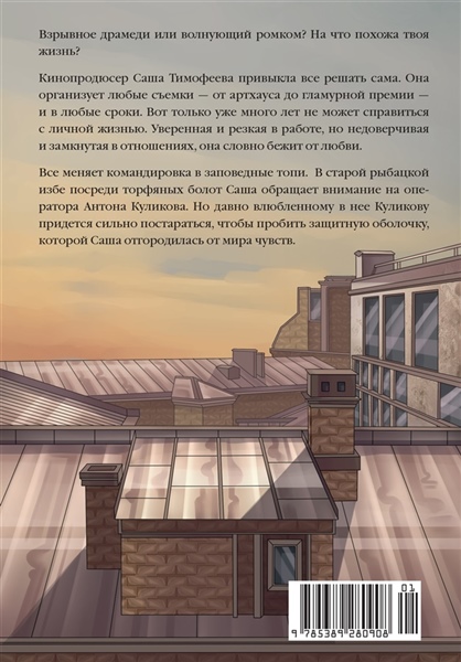 Все меняет командировка в заповедные топи.В старой рыбацкой избе посреди торфяных болот Саша обращает внимание на оператора Антона Куликова. Но давно влюбленному в нее Куликову придется сильно постараться, чтобы пробить защитную оболочку, которой Саша отгородилась от мира чувств.