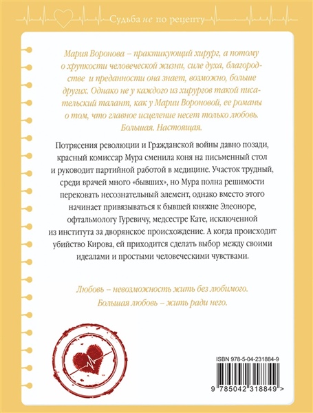 Потрясения революции и Гражданской войны давно позади, Красный комиссар Мура сменила коня на письменный стол и руководит партийной работой в медицине. Участок трудный, среди врачей много "бывших", но Мура полна решимости перековать несознательный элемент, однако вместо этого начинает привязываться к бывшей княжне Элеоноре, офтальмологу Гуревичу, медсестре Кате, исключенной из института за дворянское происхождение. А когда происходит убийство Кирова, ей приходится сделать выбор между своими идеалами и простыми человеческими чувствами?