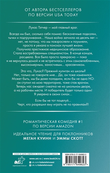 Лукас Тэтчер — мой главный враг. Всегда им был, сколько себя помню: бесконечные подколки, тычки и подтрунивания… Наша война затихла на десять лет — нет, не потому, что мы повзрослели и поумнели, просто я уехала в поисках лучшей жизни. Получила престижное медицинское образование. Стала востребованным специалистом. В конце концов, расцвела. Все было просто прекрасно — пока я не вернулась домой и не встретилась с этим самовлюбленным, высокомерным, заносчивым… красавчиком. Это что, Лукас? Прежний хулиган из школы? Нет, только не говорите мне… Да, он тоже изменился. Может быть, мы бы даже поладили, если бы не одно НО: он ступил на мою территорию, тоже став врачом. Теперь нас ожидает схватка не на школьном дворе, а на рабочем месте. И победитель будет только один! Я уверена в своих силах… Если бы не тот поцелуй… Черт, кто разрешил ему играть не по правилам?!