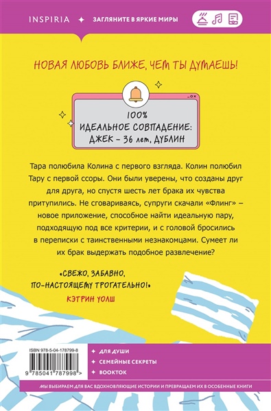 НОВИНКА! Бестселлер БукТока! Тара полюбила Колина с первого взгляда. Колин полюбил Тару с первой ссоры. Они были уверены, что созданы друг для друга, но спустя шесть лет брака их чувства притупились. Не сговариваясь, супруги скачали «Флинг» — новое приложение, способное найти идеальную пару, подходящую под все критерии, и с головой бросились в переписки с таинственными незнакомцами. Сумеет ли их брак выдержать подобное развлечение?