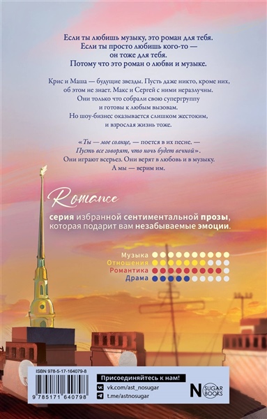 Если ты любишь музыку, это роман для тебя. Если просто любишь кого-то — он тоже твой. Потому что это роман о любви и музыке. Крис и Маша — будущие звезды. Пусть даже никто, кроме них, об этом не знает. Макс и Сергей с ними неразлучны. Они только что собрали свою супергруппу и готовы к любым вызовам. Но шоу-бизнес оказывается слишком жестоким, и взрослая жизнь тоже. "Ты — мое солнце, — поется в их песне. — Пусть все говорят, что ночь будет вечной". Они играют всерьез. Они верят в любовь и в музыку. А мы — верим им.